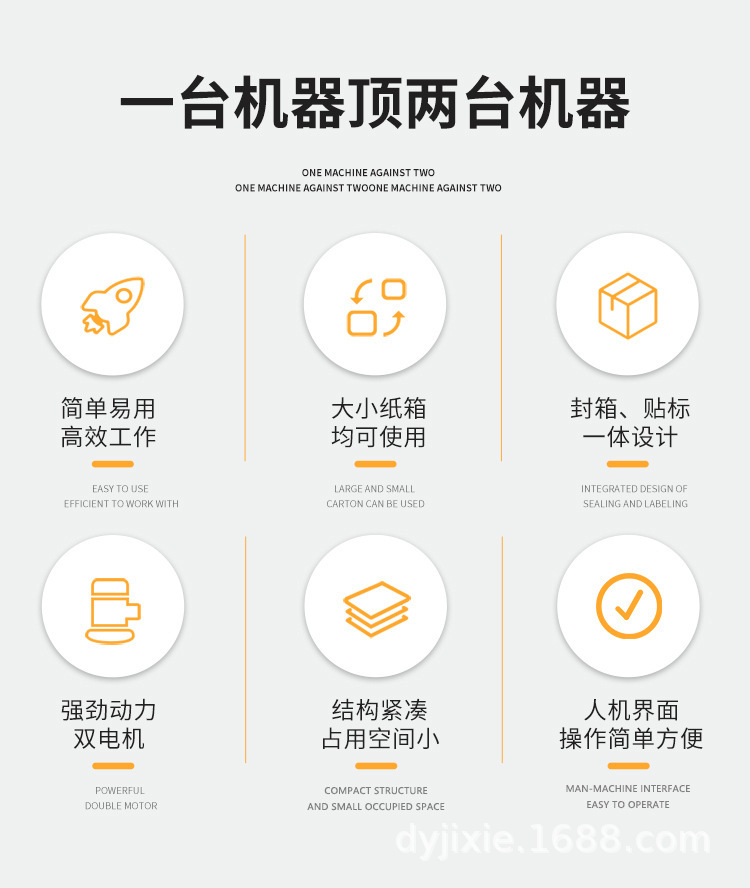 - 包裝一致性:保證了封箱和貼標質量的一致性。每個紙箱的封箱牢固程度和標簽位置都能保持高度一致,使產品包裝更加標準化、規范化。這有助于提升產品整體形象,在消費者眼中,整齊、規范的包裝代表著企業對產品質量的重視。