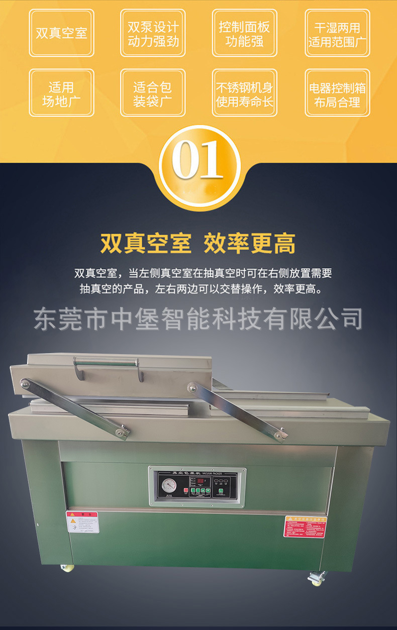 - 自動(dòng)化程度:自動(dòng)化程度高的雙室真空包裝機(jī),如配備自動(dòng)上料、下料、分揀等功能,能減少人工操作時(shí)間,提高工作效率。