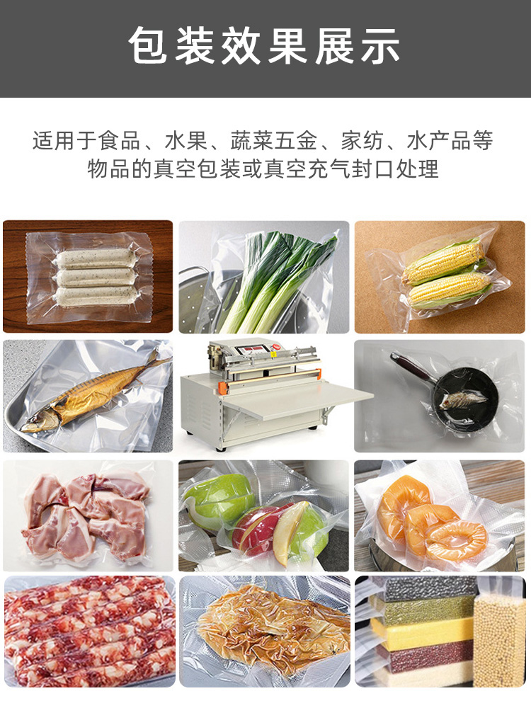 - 密封性能:外抽真空包裝機的整體密封性能對真空度至關重要。如果機器的抽氣室、包裝袋封口處等部位存在密封不嚴的情況,外界空氣會不斷進入,導致抽氣速度變慢,難以達到設定的真空度。