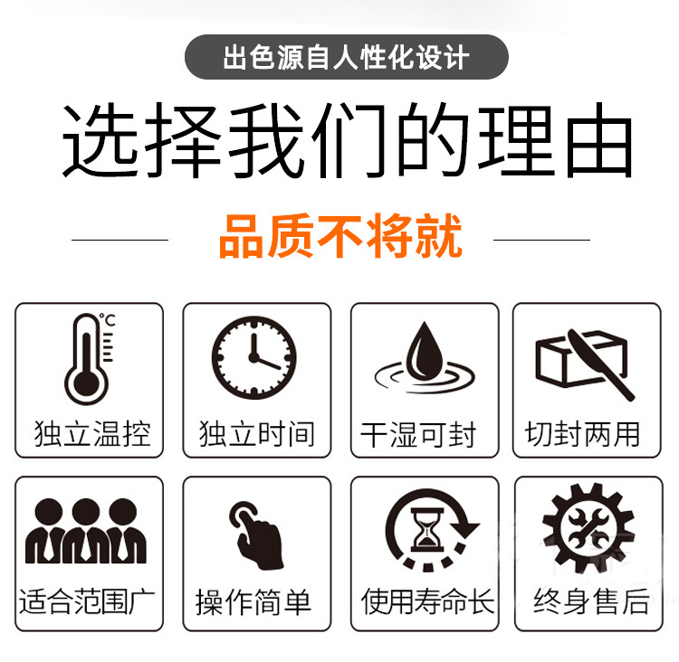 - 封口美觀度:要實(shí)現(xiàn)封口平整、無(wú)褶皺、無(wú)焦痕等美觀效果,需要精確的溫度控制和合適的功率。對(duì)于對(duì)封口美觀度要求高的產(chǎn)品,功率不能過(guò)大或過(guò)小,過(guò)大易造成焦痕,過(guò)小則封口不平整,通常 700 - 900W 的功率在合理調(diào)節(jié)下能滿(mǎn)足大多數(shù)此類(lèi)需求。