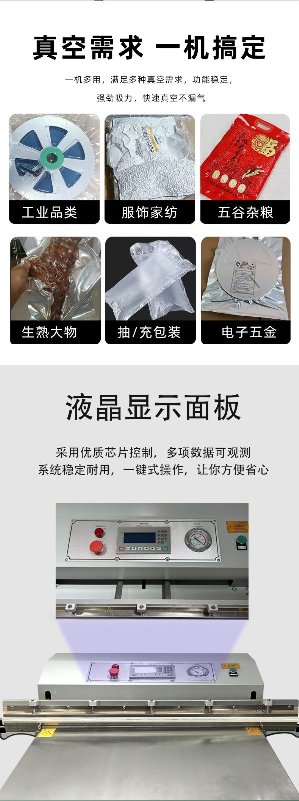 2. 優(yōu)質(zhì)真空效果:能夠達到較高的真空度,有效去除包裝內(nèi)的氧氣、水汽等,減緩產(chǎn)品氧化、霉變、細菌滋生等問題,更好地保持產(chǎn)品的品質(zhì)、口感與營養(yǎng)價值。