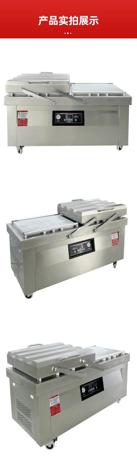 通過這種 “交替作業” 模式,雙室機無需等待單個室的完整流程結束即可開始下一批包裝,效率比單室機提升 60%-100%,同時雙泵 + 雙室獨立密封的設計,也保障了每一批次物料的真空度與密封性穩定。