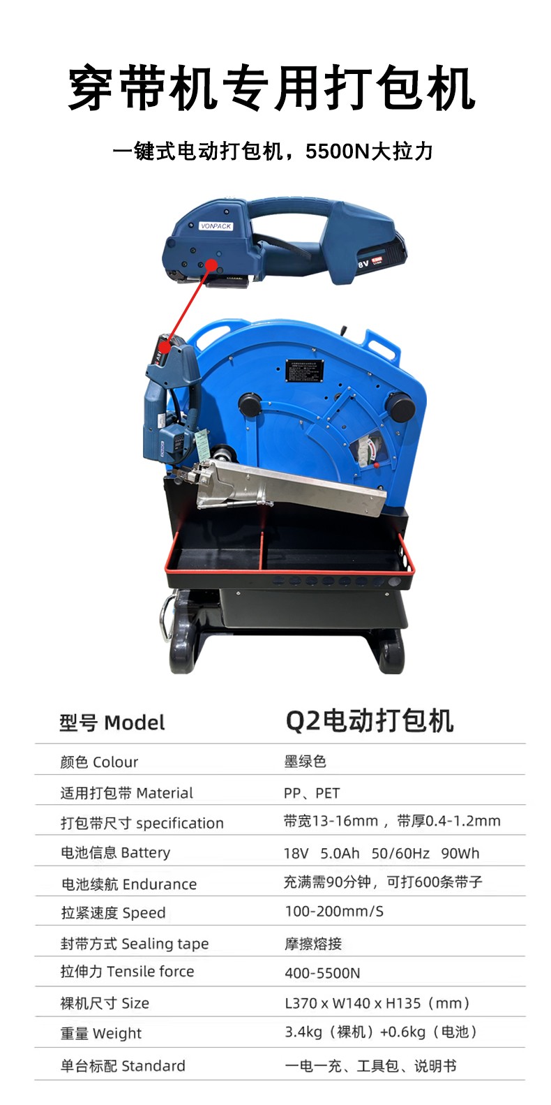 - 打包帶類型:PP 帶成本低、韌性好,適合紙箱等輕貨;PET 帶強度高、耐磨損,適合金屬、建材等重貨,需確認設備支持的帶寬(12-19mm)與帶厚(0.6-1.3mm)范圍。