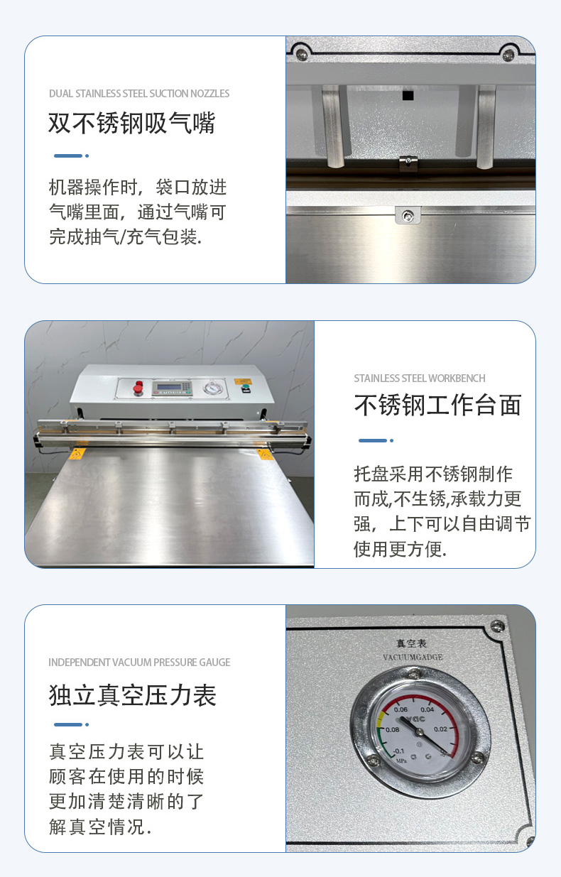 - 功能匹配:根據核心需求選擇集成功能,例如食品行業(yè)優(yōu)先選 “真空 + 充氣 + 印字” 款,工業(yè)領域可側重 “真空 + 寬邊封口” 款。