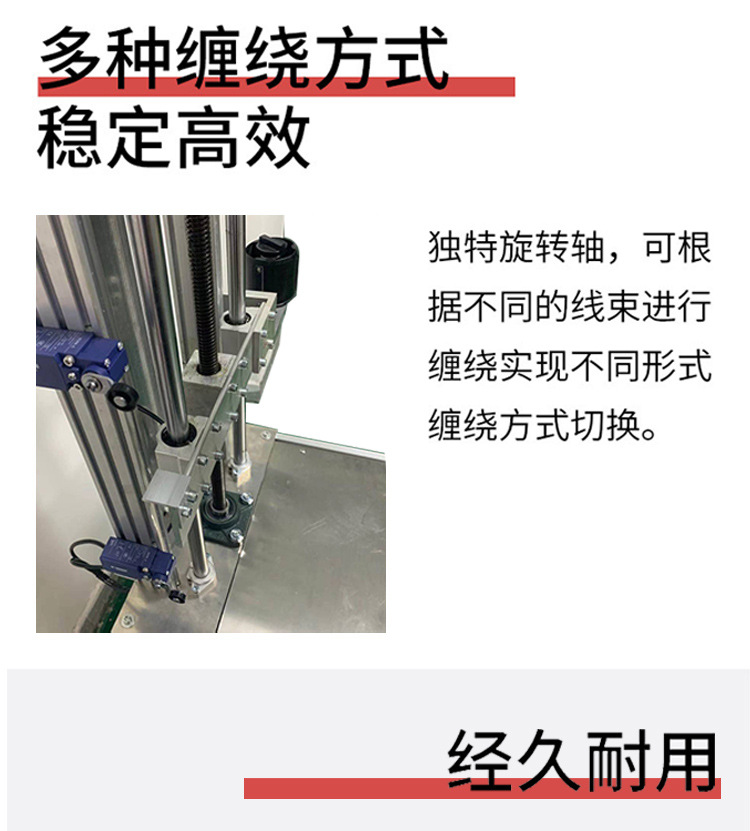 - 線束纏繞機(jī):用于電線、電纜等線束的纏繞,通過機(jī)械臂或牽引裝置帶動(dòng)線束移動(dòng),同時(shí)膠帶進(jìn)行纏繞,可實(shí)現(xiàn)全纏、點(diǎn)纏、花纏等多種纏繞方式。