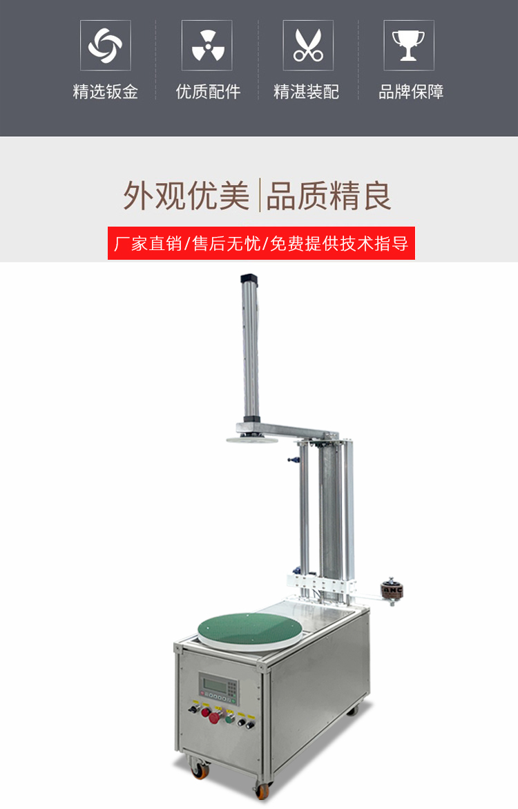 - 高效連續(xù)作業(yè):無需人工固定薄膜、剪斷收尾,從貨物上料(搭配流水線可全自動(dòng)上料)到纏繞完成僅需 30-90 秒 / 件,單臺(tái)設(shè)備每小時(shí)可處理 40-120 件貨物,是人工纏繞效率的 5-8 倍。