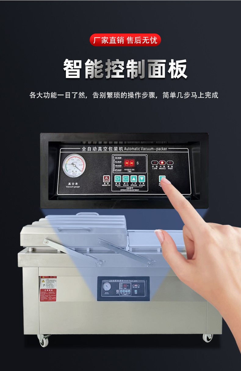 雙室平板真空包裝機對比單室真空包裝機,核心優(yōu)勢集中在作業(yè)效率、生產(chǎn)連續(xù)性、人工利用率: