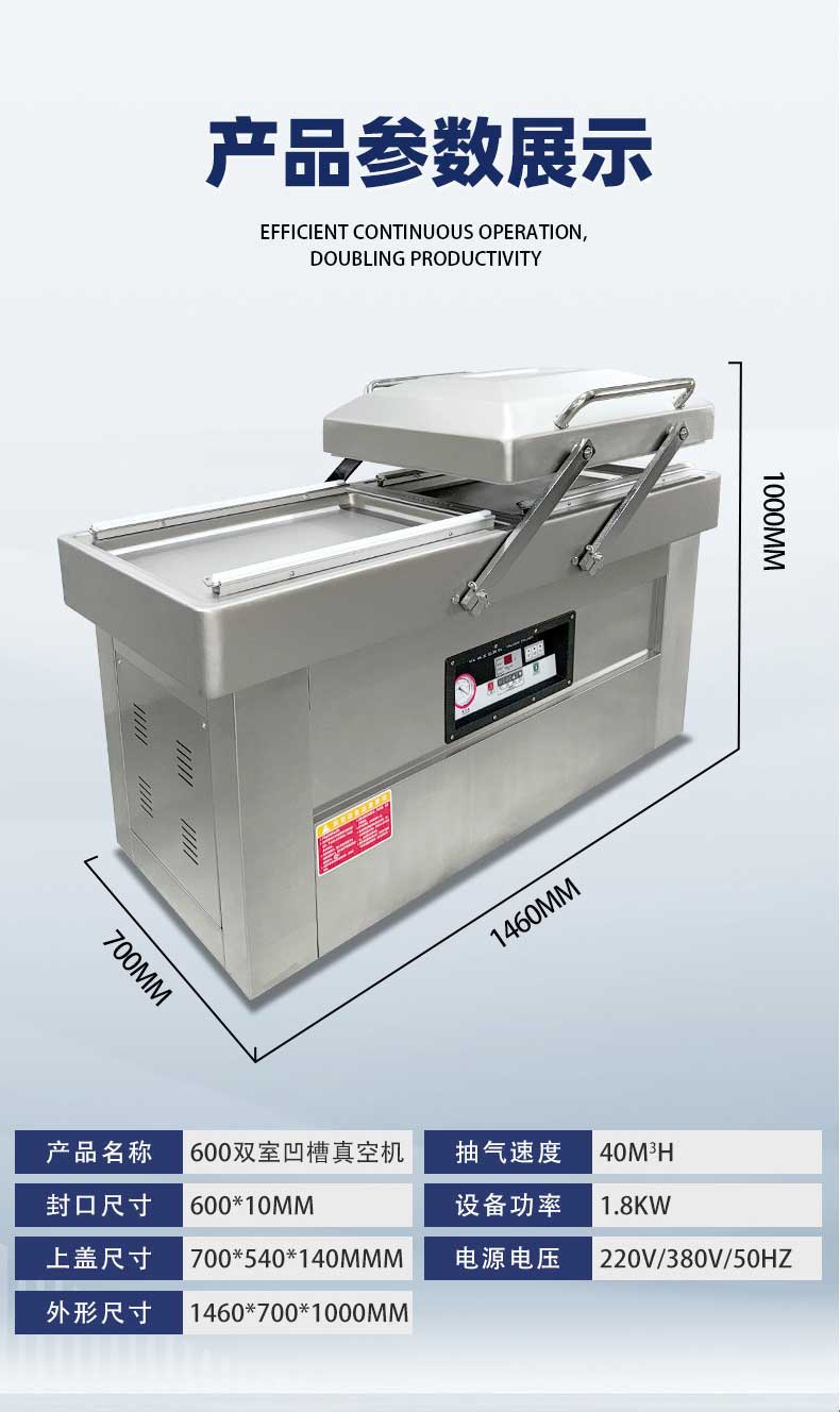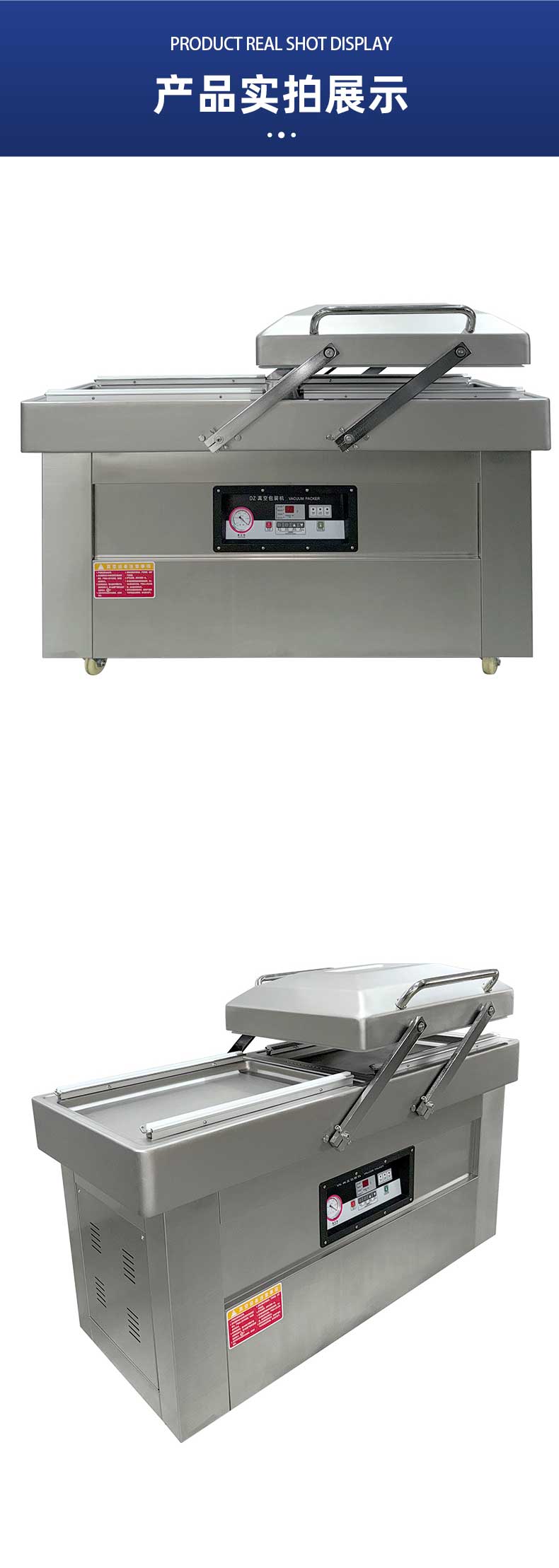 雙室真空包裝機可在真空包裝的基礎上,向包裝袋內充入氮氣、二氧化碳等惰性氣體或混合氣體,起到更好的防腐、防潮、防氧化等保質效果