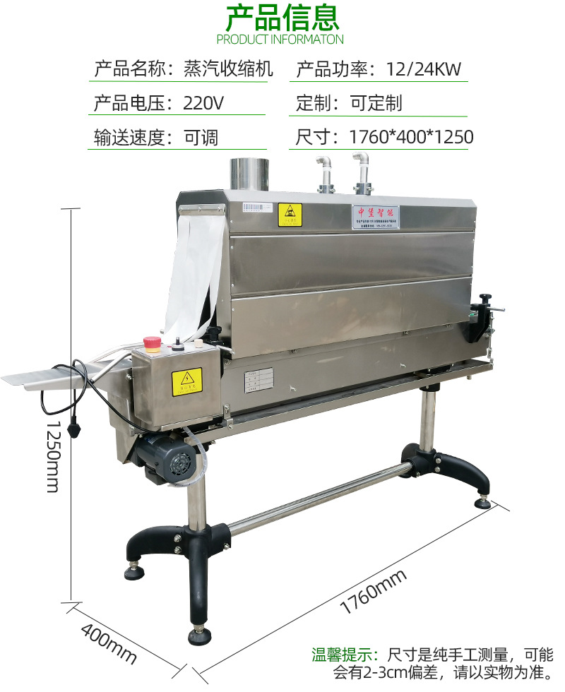 - 能夠精確控制收縮程度。通過調節蒸汽的溫度、壓力和產品在收縮通道中的輸送速度,可以根據不同的包裝薄膜材料和產品要求,實現不同程度的收縮,滿足多樣化的包裝需求。
