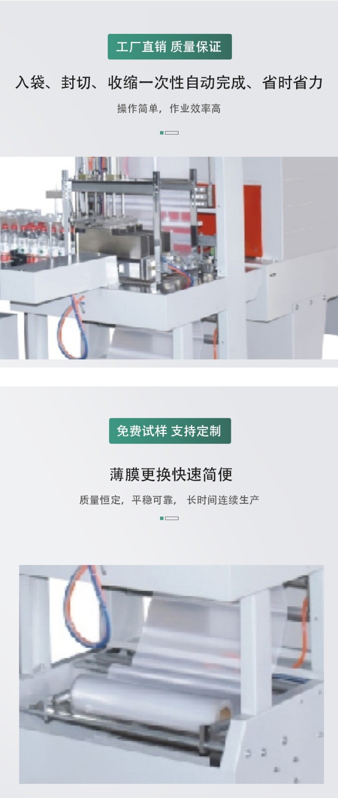 • 生產線集成:在現代化的生產車間中,全自動袖口式包裝機通常與其他生產設備集成在一起,形成完整的生產線。例如,它可以與上游的物料加工設備和計量設備連接,實現物料的自動輸送和精確計量。與下游的貼標機、噴碼機、裝箱機等設備聯動,能夠完成產品包裝后的后續工序,如貼上產品標簽、打印生產日期和批次號、將包裝好的產品裝入箱子等,從而提高整個生產流程的效率。