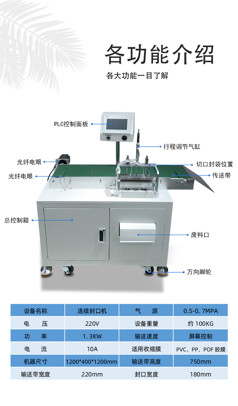 - 適應(yīng)性強:可以通過調(diào)整封切參數(shù)和更換不同規(guī)格的輸送帶、封切刀等部件,適應(yīng)不同尺寸、形狀和材質(zhì)的產(chǎn)品包裝需求,具有較高的靈活性和通用性。