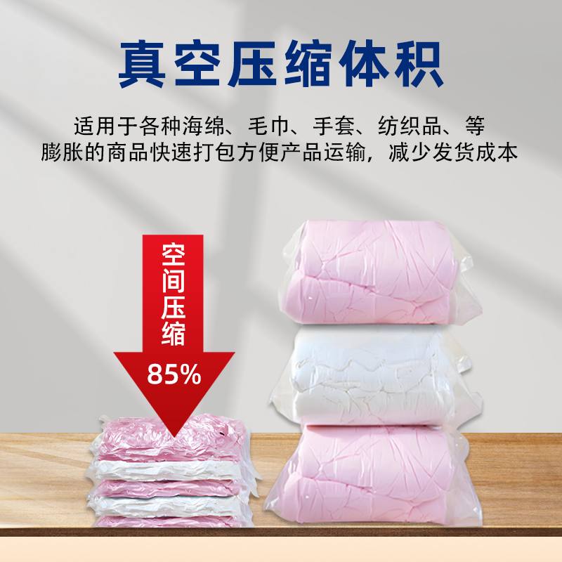 - 家居用品:用于羽絨被、棉被、枕頭、毛絨玩具等蓬松物品的收納包裝,可大大節省存儲空間,使家居環境更加整潔有序。