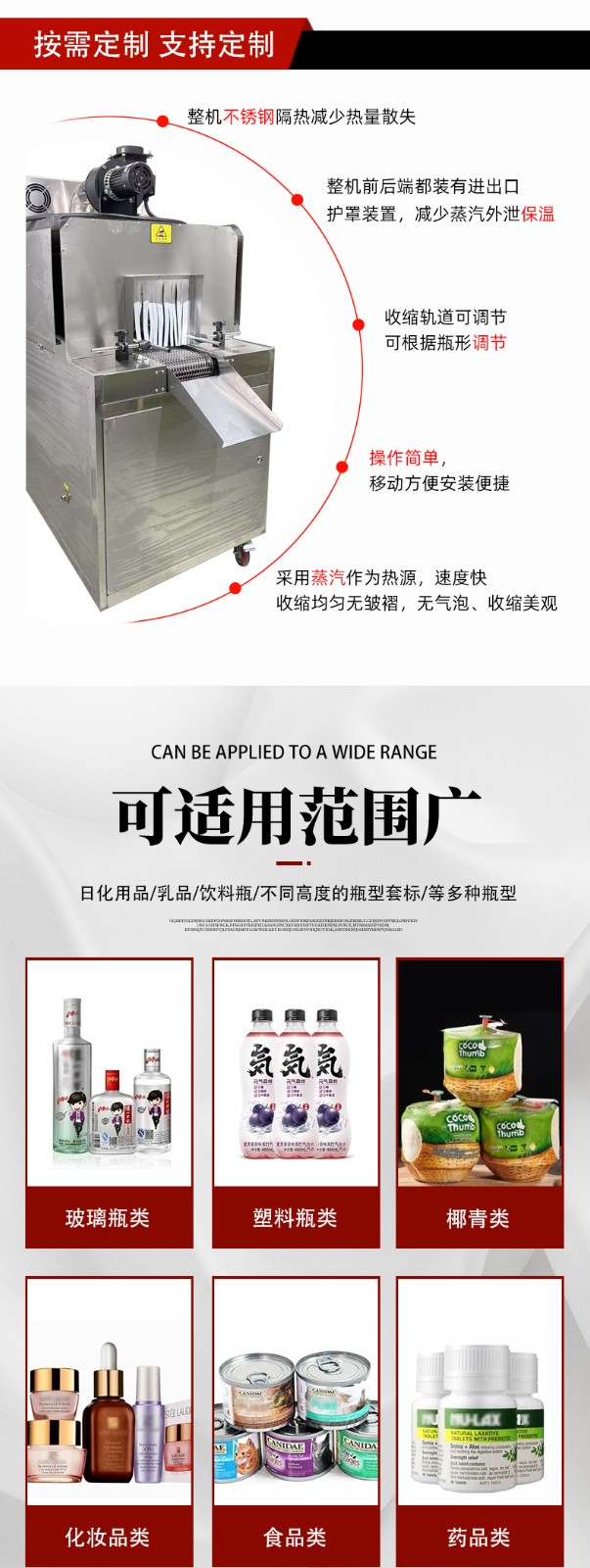 蒸汽收縮一體機(jī)的優(yōu)勢(shì)源于其對(duì) “蒸汽加熱” 特性的充分利用,以及人性化的結(jié)構(gòu)設(shè)計(jì),具體特點(diǎn)如下: