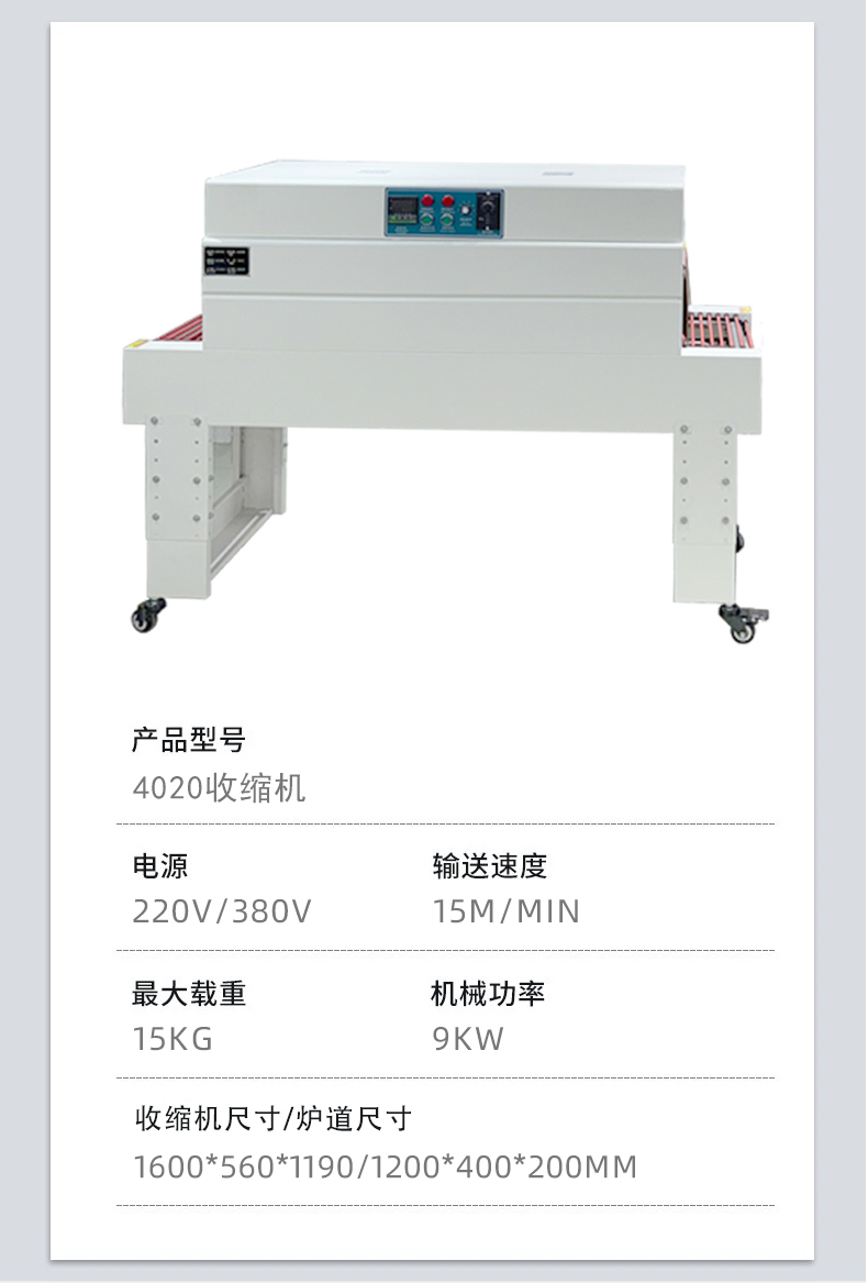 - 收縮爐采用 “不銹鋼保溫爐體 + 熱風循環設計”,熱量流失少,比傳統開放式加熱節能 20%-30%;