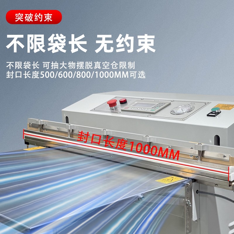 - 適配多場景:支持 PE、PA、鋁箔等多種包裝材料,可切換 “真空封口”“充氣保鮮” 兩種模式,兼顧工業(yè)防銹與食品保鮮需求。