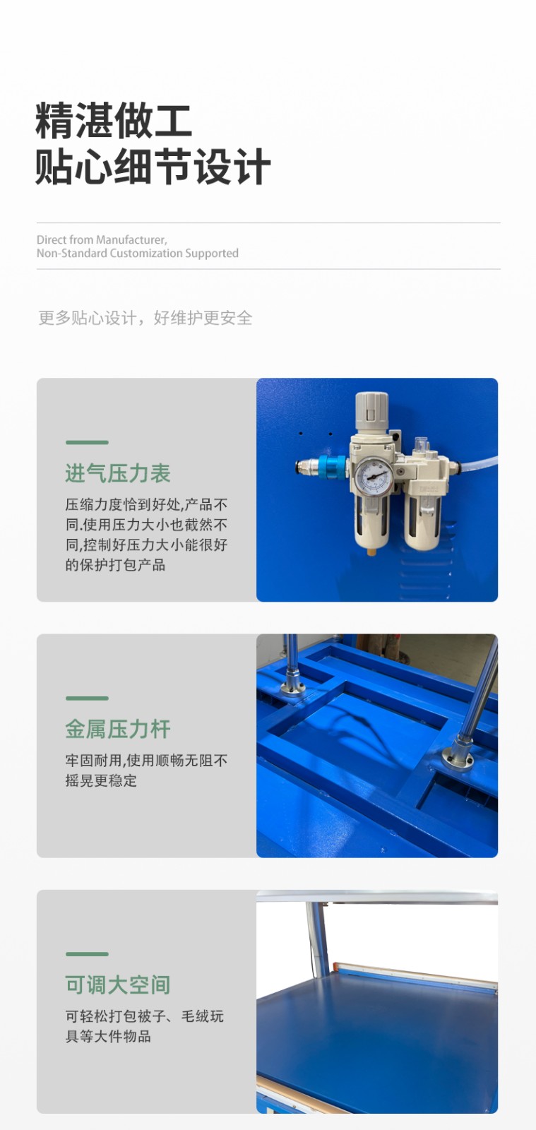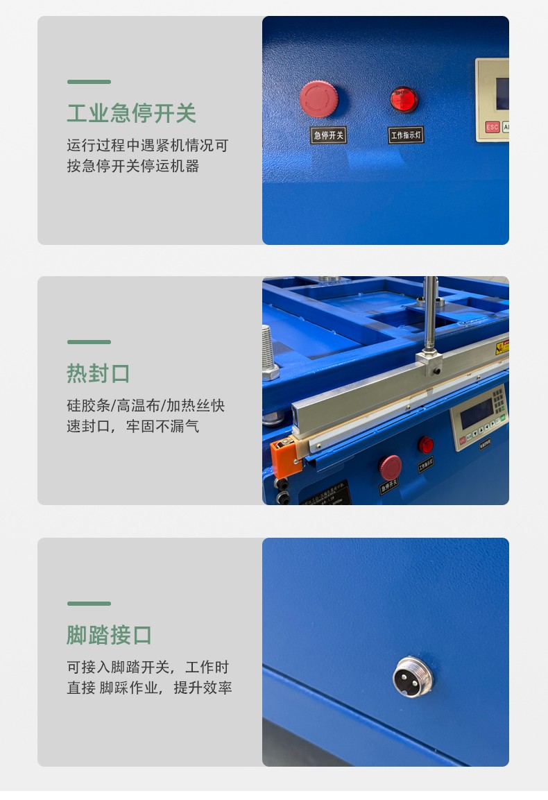 真空壓縮封口機:集成抽真空功能,先抽走包裝內(nèi)空氣(如食品袋、零件袋),再加壓封口,適合需要防潮、保鮮、防氧化的場景(如肉類真空包裝、精密零件防銹包裝)。